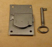 Chest Lock 1 Available NOTE: Sale of this item is not complete until you receive a confirmation and shipping total from us. Chest Lock is used on Blanket Chest or Tool Chest. The keeper is placed on the lid of the chest and the lock is mortised (1 7/8" x 1 3/4" x 3/8") on the inside of the chest, facing to the outside of the chest. A hole is cut 1 1/4" down from the top in the chest to match the key hole center. The Lock measures 1 7/8" x 3" and is keyed, restored and ready to be installed. |