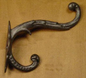 Hall Tree Hook 1 Available NOTE: Sale of this item is not complete until you receive a confirmation and shipping total from us Cast Iron Hall Tree Hook. This hook measure 3 3/4" x 7" and 3 1/2" out from the wall. It is restored and ready to be installed. |